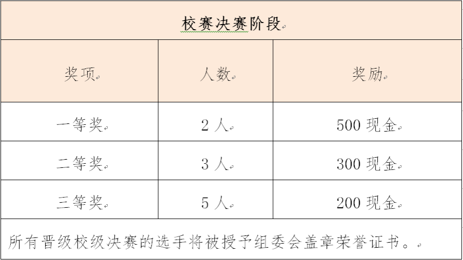 (一)本活动视作全国性赛事,参赛和获奖学生可获得第二课堂学分(趣拓)加分,并按照不同比赛阶段获奖等次颁发荣誉证书和奖金。