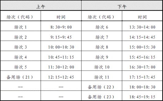 英语四级口语考试(CET-SET4)考试时间为5月24日(F251次),英语六级口语考试(CET-SET6)考试时间为5月25日(S252次),具体场次安排如下: