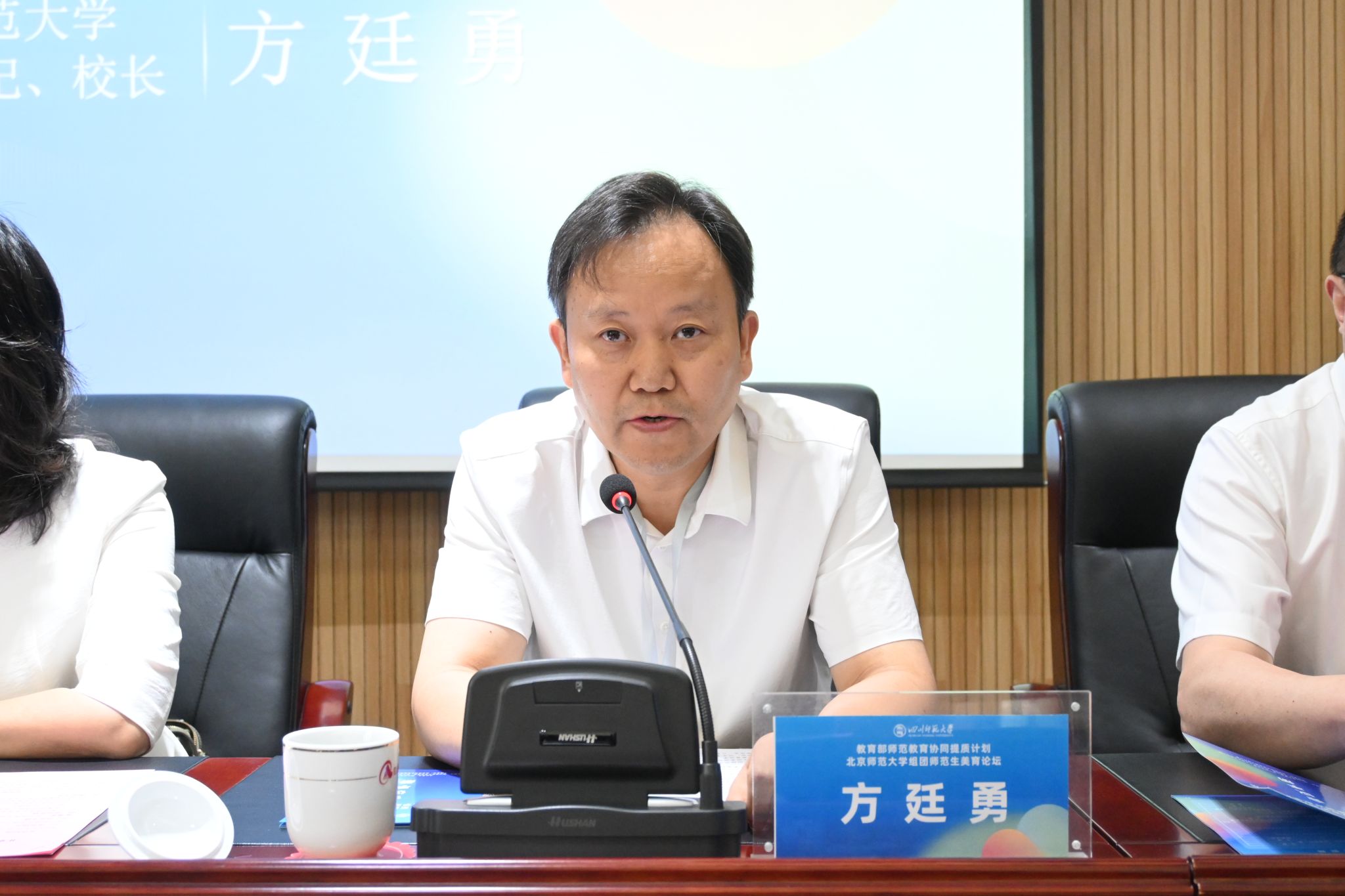 6月28日至30日,教育部师范教育协同提质计划北京师范大学组团师范生美育论坛在四川师范大学举行,校党委副书记、校长方廷勇应邀参会并在开幕式上作为嘉宾代表讲话。