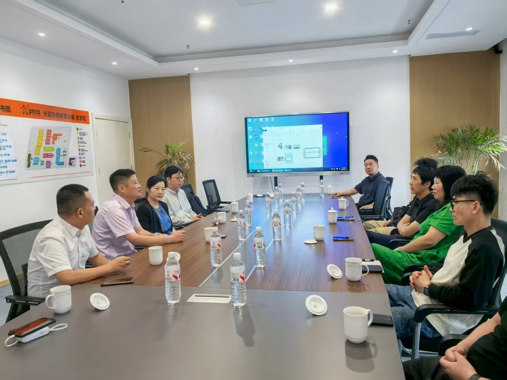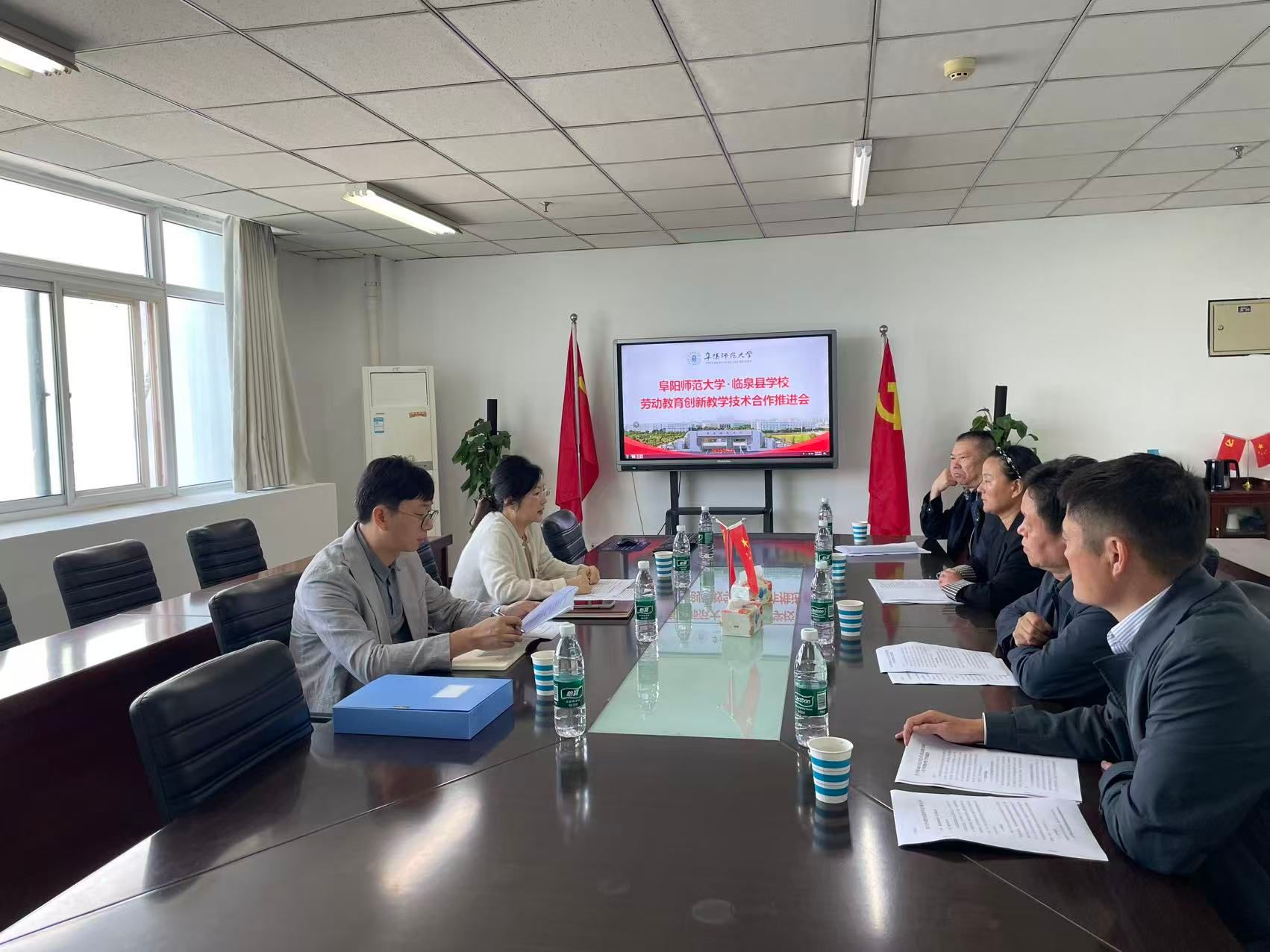 9月24日上午,临泉县青少年校外活动中心张明周主任、研学工作负责人王军主任、幸福路小学李晓光校长、城南街道一品公馆幼儿园张晓影园长一行来我校参加阜阳师范大学·临泉县学校劳动教育创新教学技术合作推进会。公共艺术与劳动教育中心主任肖玮,中心老师杨风先参加会议。双方就劳动教育创新教学技术合作等方面进行了深入研讨。并对技术合作合同细节进行协商,进一步达成横向项目合作意向。