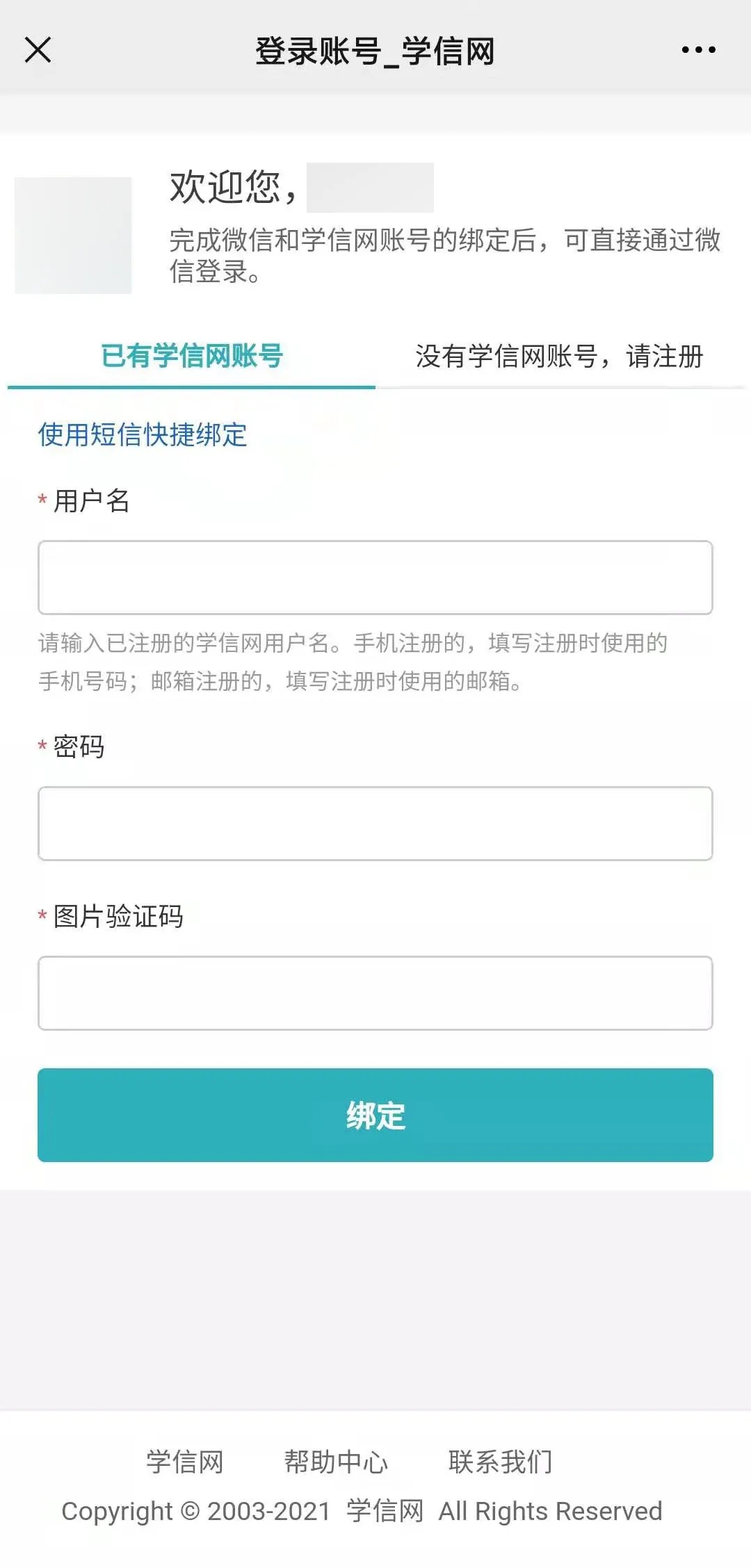 3.在个人中心点击登录,并输入学信网账号密码,点击绑定