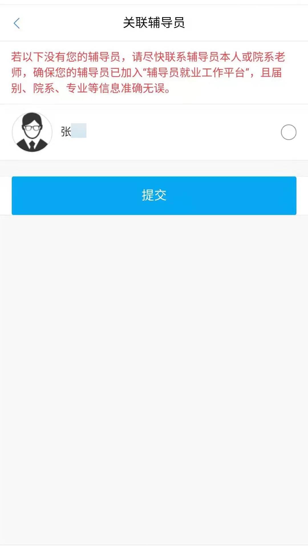 5.在页面中勾选自己的辅导员并提交,则关联成功