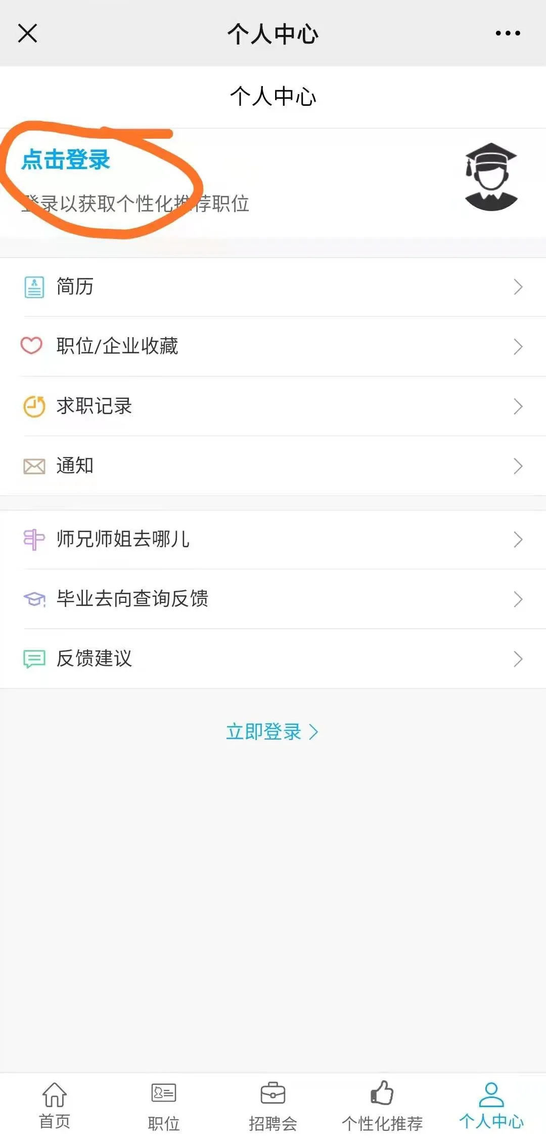 点击个人中心列表上的“简历”,查看教育背景,确认最高学历的毕业时间为2022年且带有“来自学信档案”标识,若尚未显示教育背景,请点击刷新图标获取最新的学籍信息。若刷新后仍未显示,请先到学信网完成验证绑定学籍,再重新刷新。