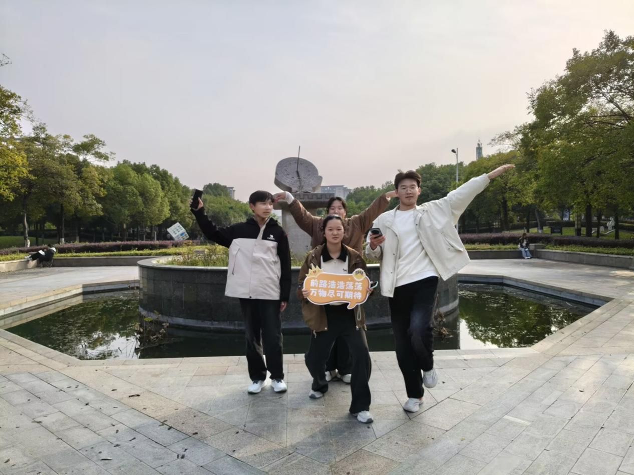 活动正式启动后,各小组迅速集结,带着标志手举牌,向着校园内的10个指定地点出发。在寻找“遗失的角落”过程中,同学们充分发挥团队协作精神,有的负责规划路线,有的负责构思创意姿势,有的负责捕捉精彩瞬间。按照活动要求,各小组需在不同地点完成两人照、三人照、四人照至少各一张,且照片中必须清晰露出标志手举牌和每个人的脸庞。校园里的林荫道、复古亭台、特色雕塑等平日里被忽略的角落,都成为了同学们镜头下的独特风景,创意十足的姿势与灿烂的笑容交织在一起,展现了当代大学生的青春活力。