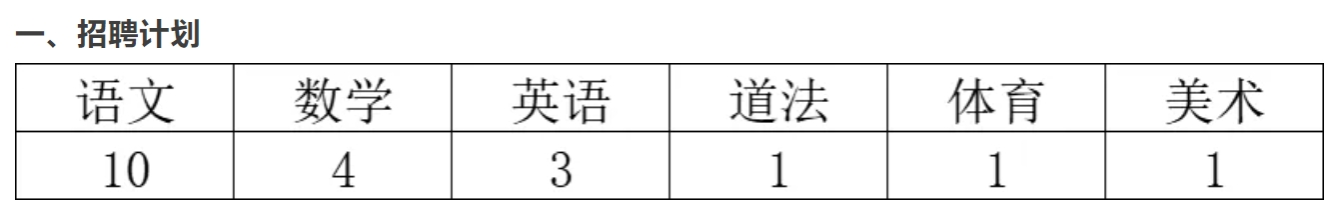 语文1人、数学1人、英语1人、美术1人。