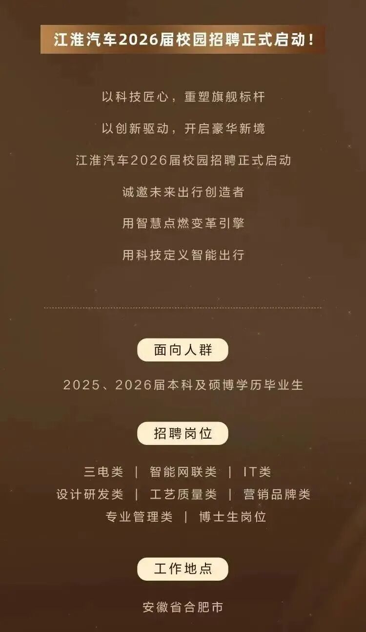 江淮汽车2026届校园招聘