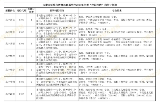 计划招聘在编教师37名,具体岗位见附件1《安徽省蚌埠市教育局直属学校2025年冬季“校园招聘”岗位计划表》(以下简称《岗位计划表》)。