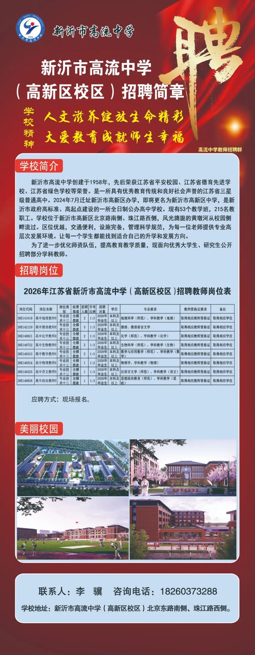 新沂市高流中学2026年教师招聘简章
