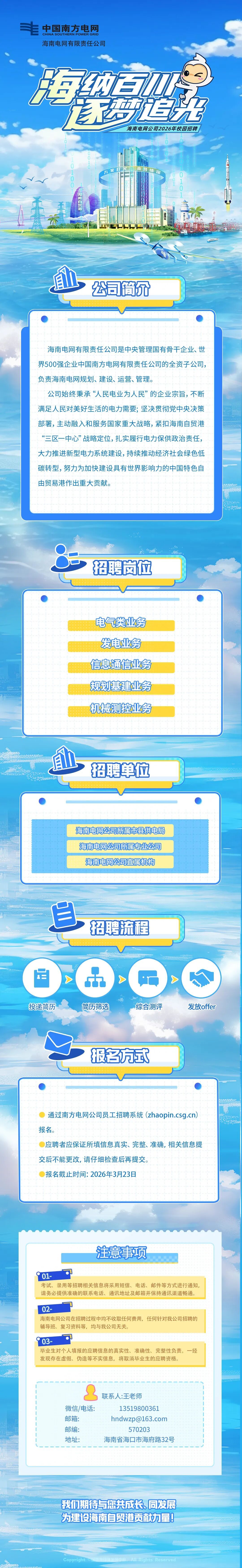 海南电网有限责任公司2026年春季校园招聘公告