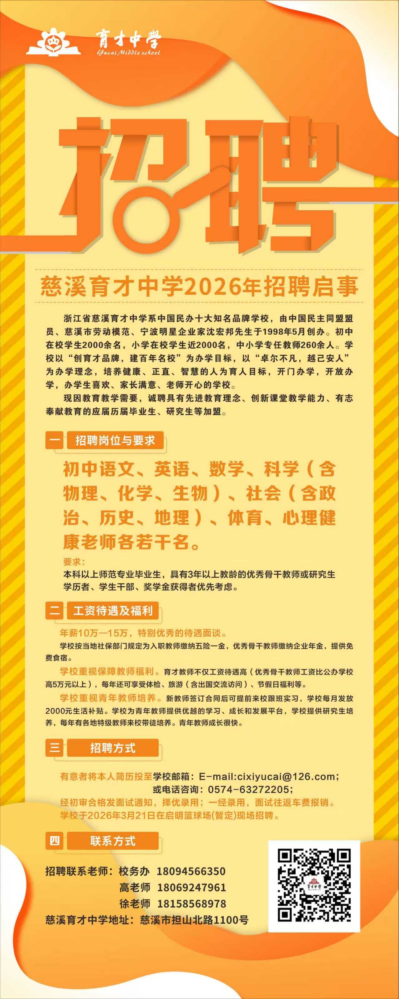 慈溪育才中学2026年招聘启事