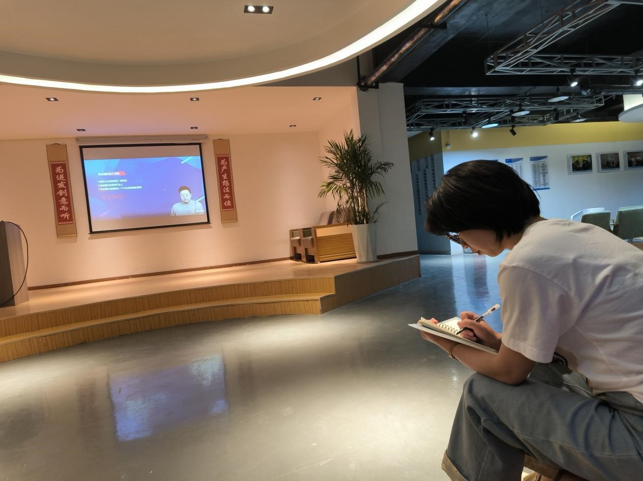 活动第二项,直播正式开始,大家都全神贯注地观看直播,随着指导老师讲解的深入,同学们纷纷被内容吸引,纷纷拿起笔做笔记,丰富自己的创业思维和创业团队如何选择方面有关的知识。