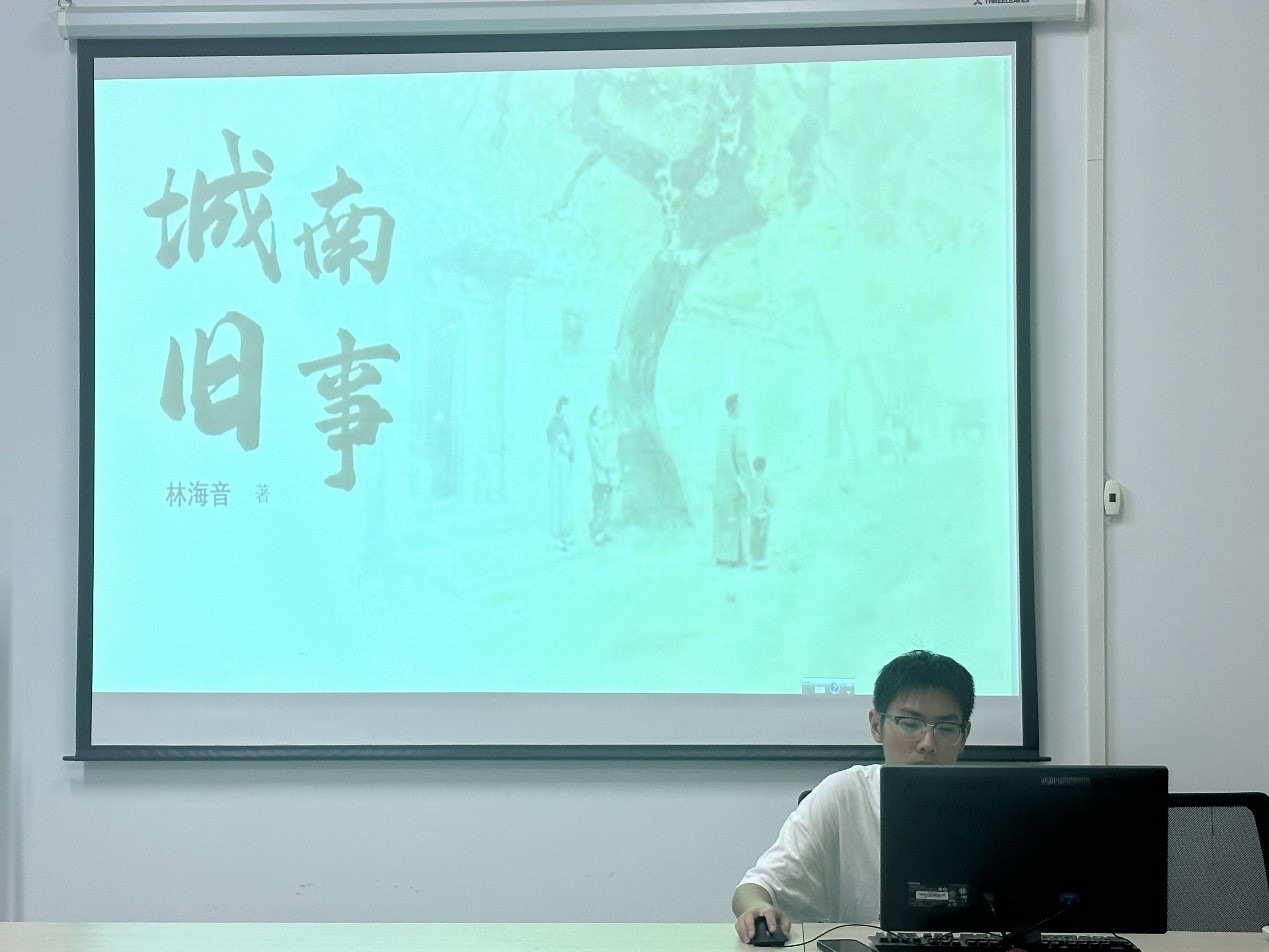 活动第二项,主持人播放了视频来进一步介绍书籍。本书以深挚的情怀和笔触追述20世纪20、30年代北京城南的旧事,叙事结构包括两层,表层结构是串珠式的,以成长为线,将小英子童年经历的五个故事集合在一起。深层结构是作者内心创作情感的表露与寄托,小说以不断的"离去"来组织情节,推动故事的发展。在内外两层结构的结合与互补下,小说得到了完整的表达与阐释。包含了作者绵延不绝的乡思乡愁,是公认的乡愁文学力作。