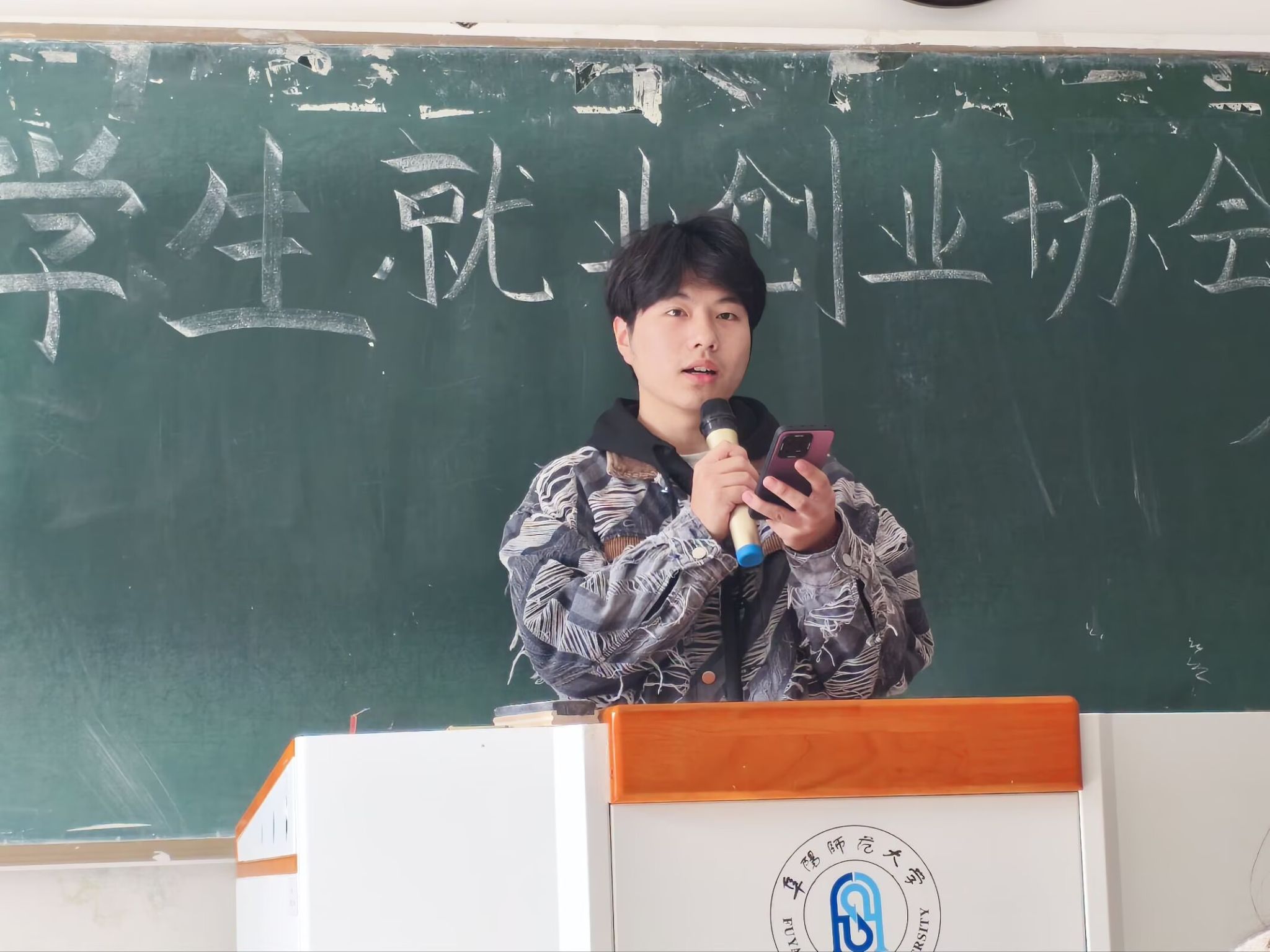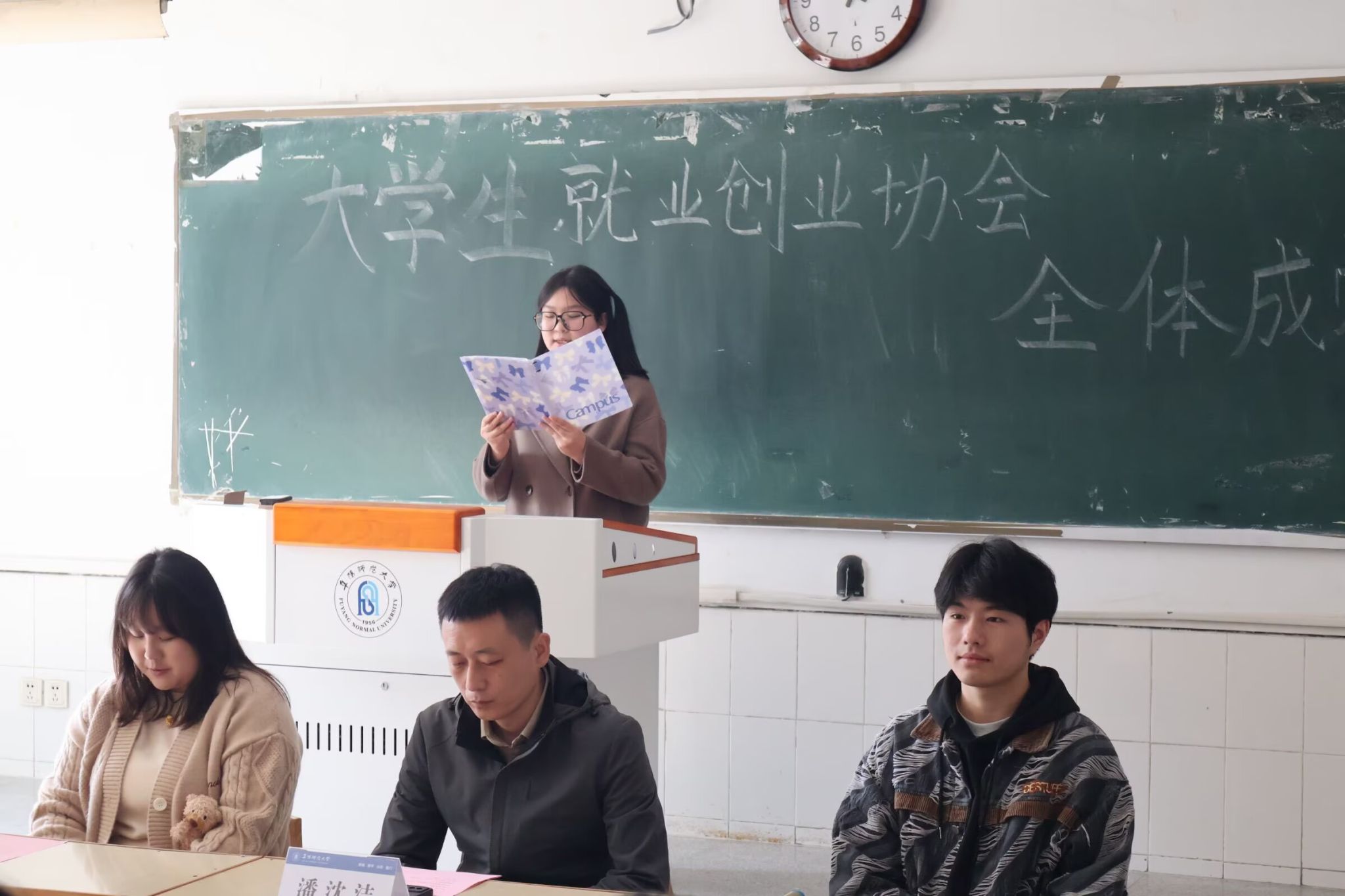 大会第三项,协会指导老师潘沈洁致辞。他肯定了协会过往的累累硕果,对协会新成员的欢迎与认可,同时也对协会未来发展提出殷切期盼,鼓励大家在就业创业领域再接再厉、奋发图强。