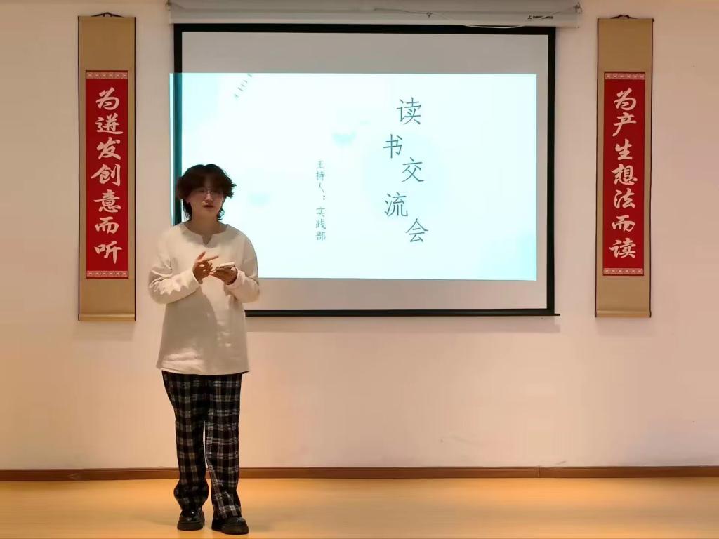 活动第一项主持人致开幕词并介绍本次活动的具体流程。首先主持人发表讲话并展示讲解PPT,由实践部三位学姐学长进行读书主题引入并分享自己所读书籍,分享自己与书籍的渊源,以及读书的有效方法,结合自己人生感悟,激发同学们阅读热情。