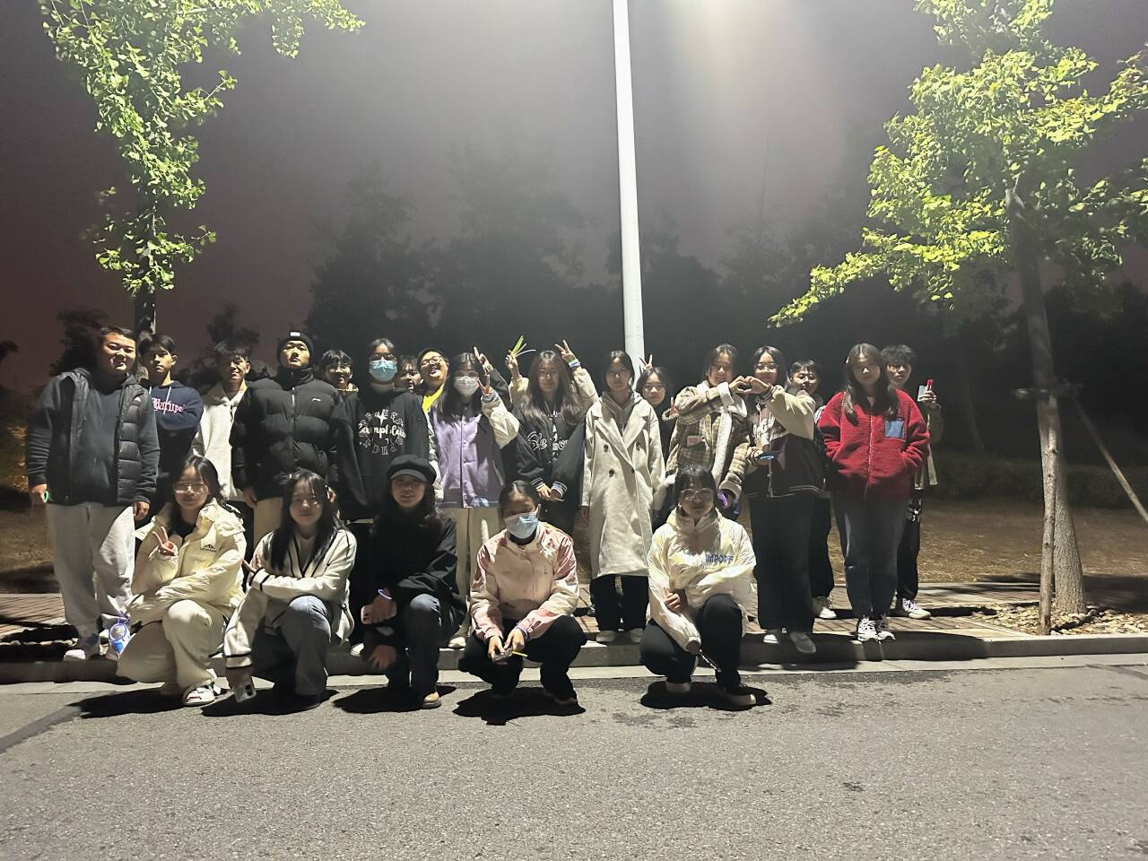 活动最后一项合影留念。活动结束后,宣传部部长清点人数并组织协会成员在路灯下留念。