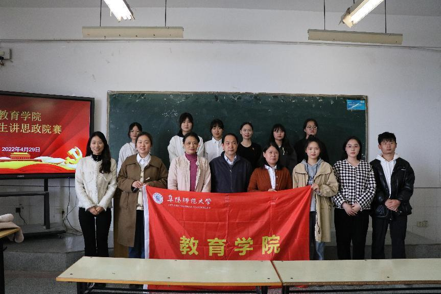 为深入贯彻落实校党〔2022〕22号《关于组织开展阜阳师范大学大学生讲思政课活动的通知》精神要求,经过广泛宣传动员、精心层层选拔,2022年4月29日上午,我院在景行楼511教室举行了大学生讲思政课学院选拔赛。院赛邀请了马克思主义学院院长闫成俭、体育学院党委书记于少华、教育学院党委书记魏文霞共同担任评委。
