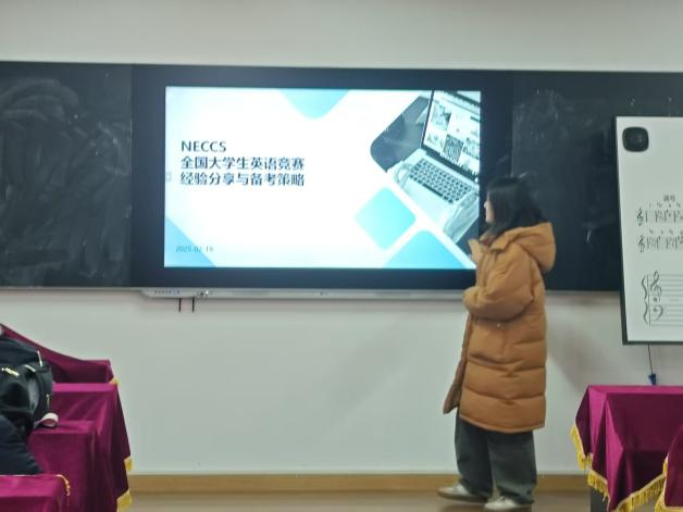 活动特邀2022级尹一冰学姐为学弟学妹做大学生英语竞赛的参赛经验分享,详细介绍了竞赛的概况、评分标准和备考策略。尹一冰学姐提到:“参加英语竞赛是一个挑战自我的过程,它让我更加了解自己的英语水平和潜力,也让我看到今后学习上的更多可能。”