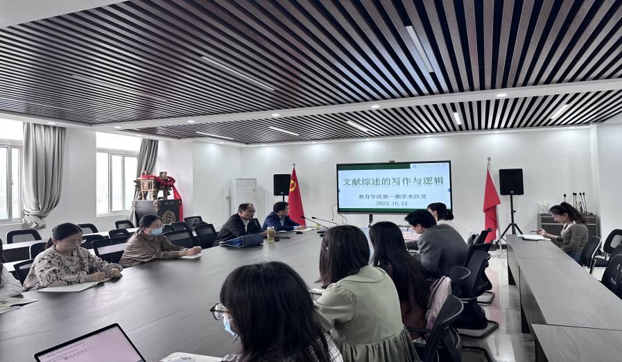 10月12日下午,我院第十五期研究生学术沙龙活动在西湖校区(三区)教育学院大楼411会议室成功举办。此次学术沙龙的主题是“文献综述的写作与逻辑”我院院长李欢、硕士研究生导师张中原以及2023级教育管理专业全体研究生参加此次活动。