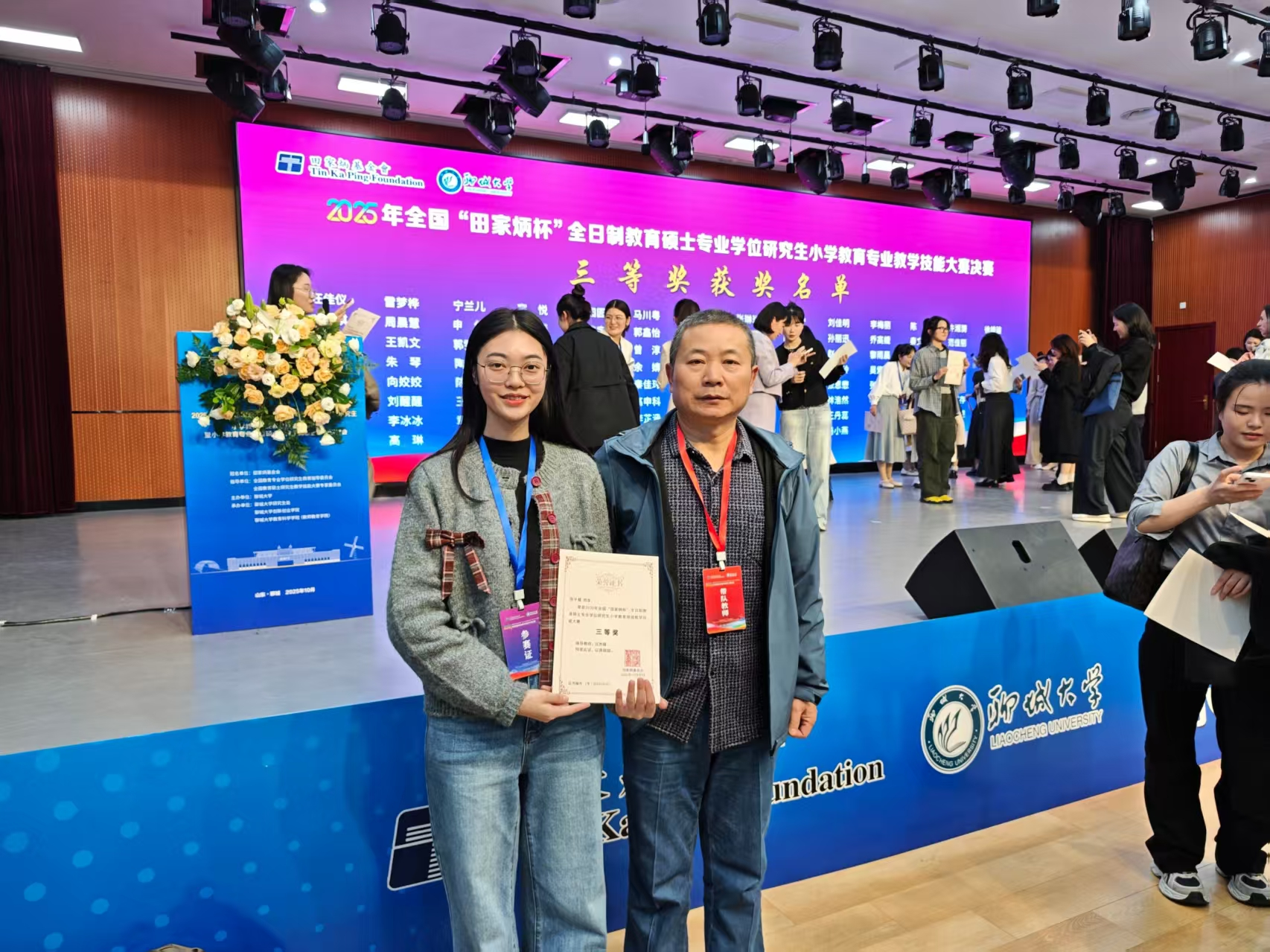 10月24日至26日,由“田家炳杯”全日制教育硕士专业学位研究生教学技能大赛专家委员会指导,“田家炳教育基金会”冠名的2025年全国“田家炳杯”全日制教育硕士专业学位研究生小学教育专业教学技能大赛决赛在山东省聊城大学举行。经过与全国众多高水平师范院校和重点大学优秀学子的激烈角逐,我院2024级小学教育专业研究生张子慧同学荣获全国三等奖。