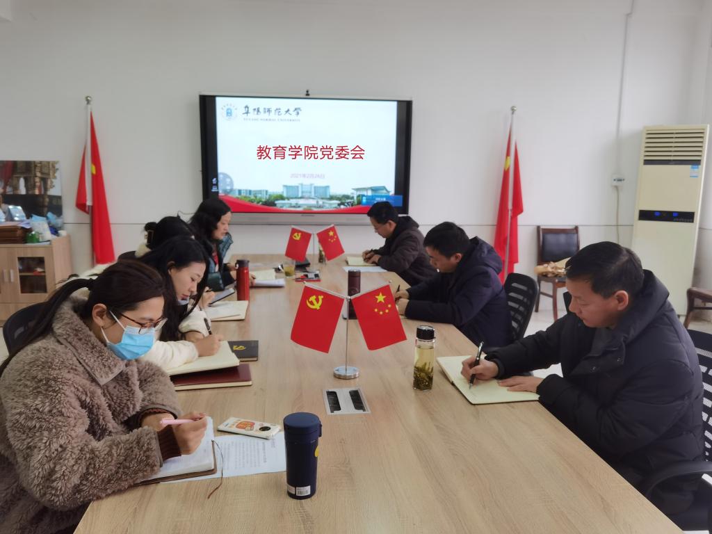 魏文霞指出,2021年是庆祝建党100周年、“十四五”开局之年,也是学院深化改革发展之年,学院党委要坚持强化政治引领,认真落实学校党委的工作部署,全面加强党的领导,认真谋划,强化落实,将党建与事业发展深入结合,保障学院各项工作有序推进。各党支部、团学、工会等工作也要提前谋划,提前部署,确保“十四五”开好局,推动教育学院全面发展,以优异成绩庆祝建党100周年!