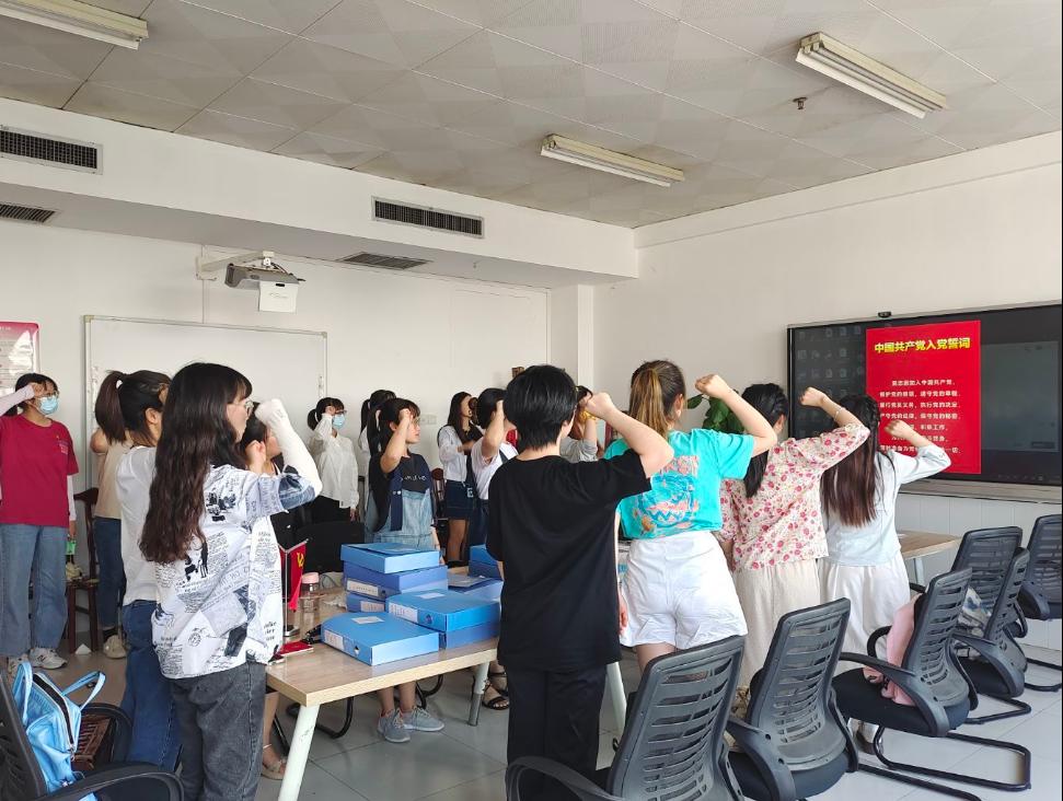 会上,邵千慧等13位预备党员,胡雯等6位发展对象依次向党组织汇报了在考察期内思想、学习及生活上的表现,同时指出了个人的不足和改进措施,表明了未来的前进方向,表达了自己加入中国共产党的决心。支部书记李佳丽对13名预备党员和6名发展对象在考察期的情况向大会做说明,并对他们在考察期的现实表现作了充分肯定,同时表达了对各位党员的期望。入党介绍人介绍了发展对象的情况并明确表述愿意介绍其入党。最后,通过与会正式党员投票表决,一致同意邵千慧等13名预备党员按期转正,胡雯等6名发展对象被接收为中共预备党员。