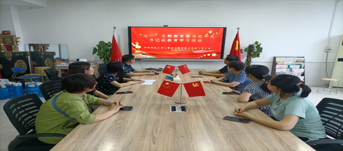 在党的生日来临之际,6月27日下午,心理系与教育技术系教师支部委员会在802会议室开展主题党日活动:“七一”主题教育暨习近平总书记《论教育》专题学习。本次学习会由党支部书记杨虎民主持。