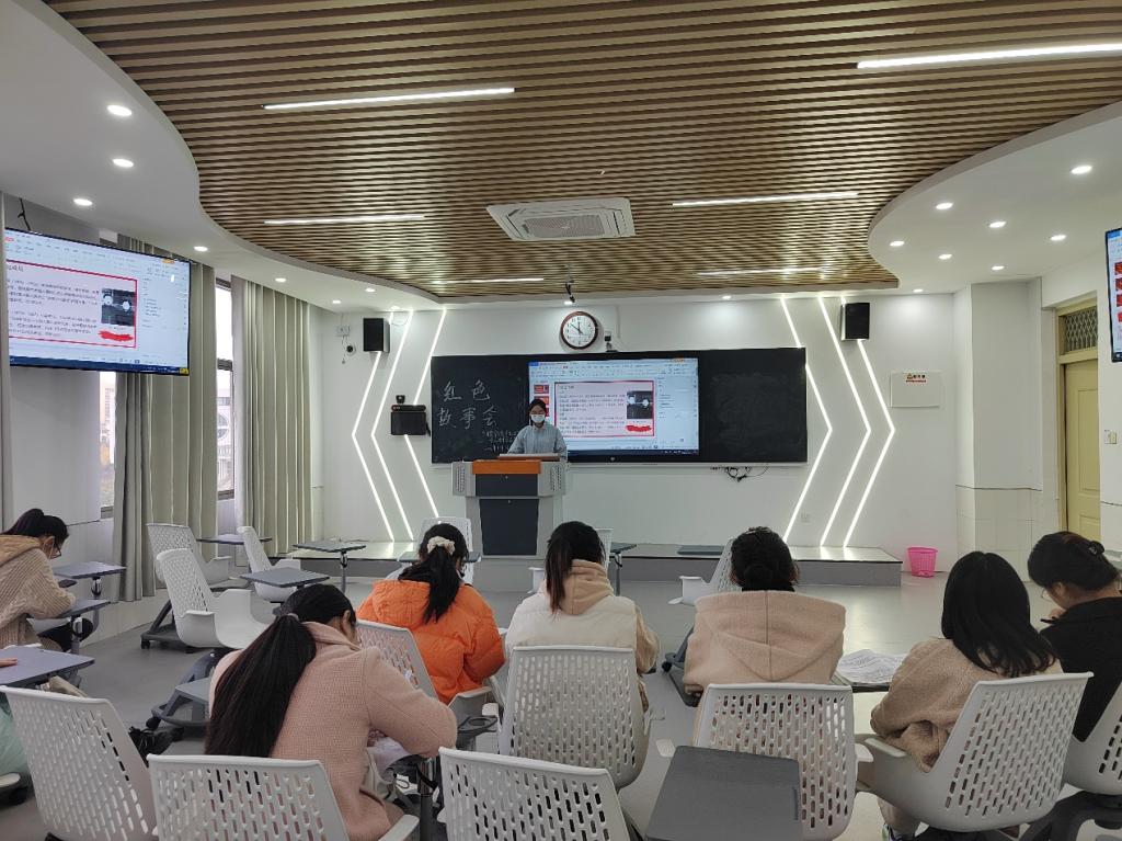 2022年11月23日下午我院学前教育与教育技术学专业学生党支部“红色故事会”活动在景行楼410举行,本次的红色故事会由2019级学前教育1班的曹慧叶同学为主讲人,全体党员参会。