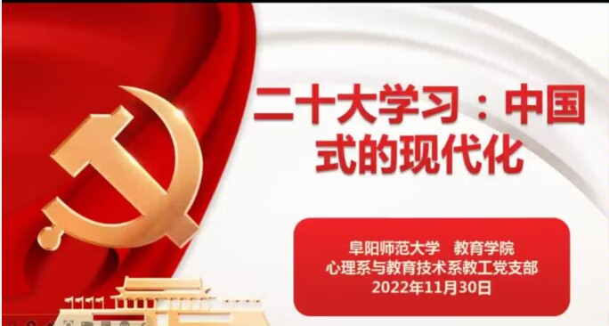 11月30日下午,心理系与教育技术系教师党支部在线召开了学习党的二十大精神专题学习会。会议由副院长王胜主持,党支部书记杨虎民就报告中关于中国式现代化论述作辅导解读。