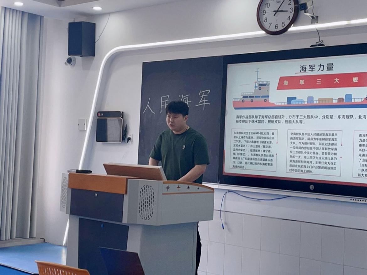 梁忠义结合《习近平新时代中国特色社会主义思想专题摘编》中关于“把人民军队建设成为世界一流军队”的专题,向支部全体成员做主题学习汇报。他根据总书记关于军队建设的论述,从海军成立、海军力量、海军纪事三个方面总体介绍了中国海军,细致讲解了舰艇部队、潜艇部队、航空兵、岸防部队、海军陆战队的主要任务,从航母往事、远洋护航、海外撤侨、台海危机四个方面让大家直观感受到中国海军给我们的满满安全感。