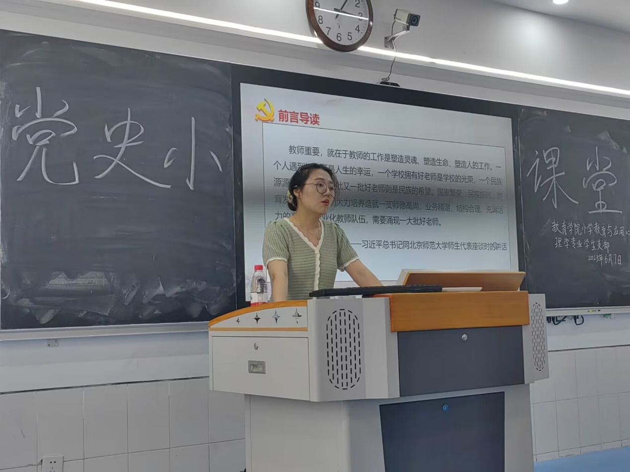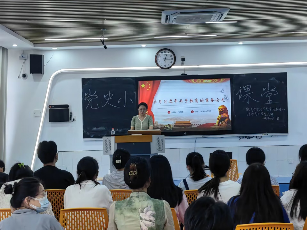 为了深入贯彻学习习近平关于教育的重要论述,在学懂、弄通、悟透、做实上下功夫,6月7日下午我院小学教育与心理学专业学生支部开展“树师德师风,做四有好老师”主题党日活动。会议由支部组织委员张思奇主持,支部全体党员参会。