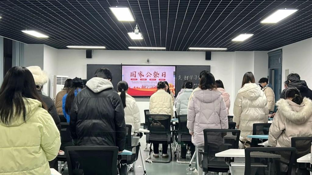 “巍巍金陵,滔滔大江,钟山花雨,千秋芬芳。一九三七,祸从天降,一二一三,古城沦丧。”2023年12月13日是南京大屠杀死难者国家公祭日,是国家和民族之间永恒的国殇。下午四点半,小学教育与心理学专业学生党支部开展主题为“勿忘国耻,铭记历史”国家公祭日默哀活动,本次活动由支部书记刘坤哲主持,支部全体党员参加。