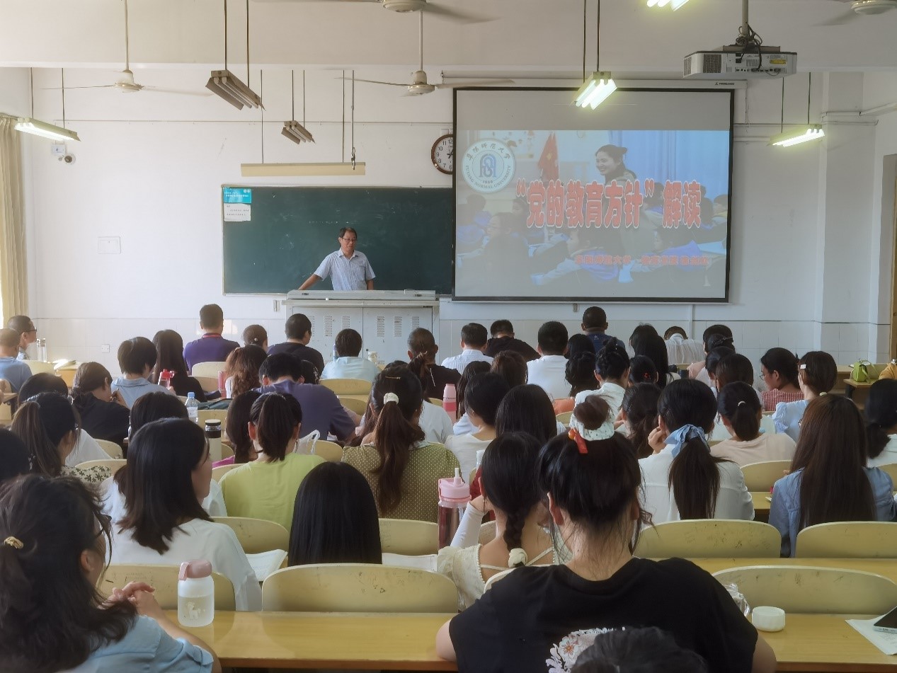 教育学院徐剑虹副教授介绍了党的教育方针的百年变迁,并结合教师工作实际,从“为谁培养人、怎样培养人、培养什么样的人”这一根本问题,做了深入细致的解读;从作为教师该如何做,呼吁广大教师,要从为党育人、为国育才的高度,从自身做起,认真学习理解掌握党的教育方针的精神,与实际教学相结合,培根铸魂、启智润心。