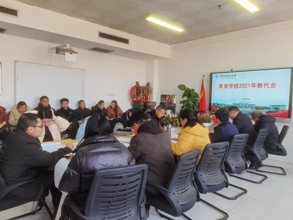 1月11日下午,教育学院在景行楼802会议室召开2021年教代会,教育学院全体教职工参加会议。会议由教育学院党委书记魏文霞主持。
