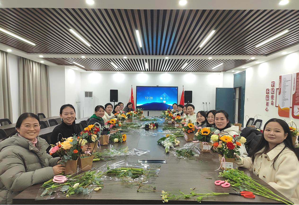 活动中,不时传来阵阵欢声笑语,大家互相交流心得,分享创作喜悦。女教工们手捧自己亲手制作的花篮纷纷合影留念,脸上洋溢着幸福和满足的笑容。她们表示,这次插花活动不仅让自己学会了新技能,更重要的是,在忙碌的生活中找到了一片属于自己的宁静之地。