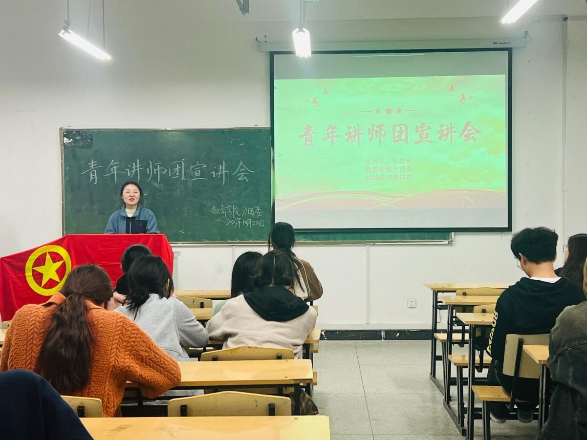 10月22日,我院分团委组织开展青年讲师团宣讲会。我院分团委负责人张思奇为主讲人,教育学院40多名团员参与会议。