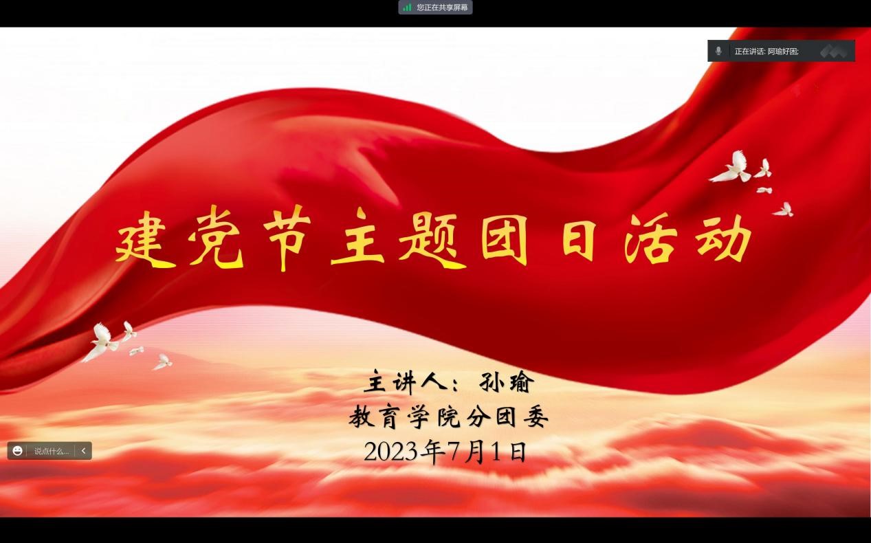 为庆祝中国共产党成立102周年,深入贯彻落实“学思想、强党性、重实践、建新功”的总要求,充分发挥团组织思想引领作用,弘扬伟大建党精神。我院分团委于7月1日在线上开展“七一”建党节主题团日活动。