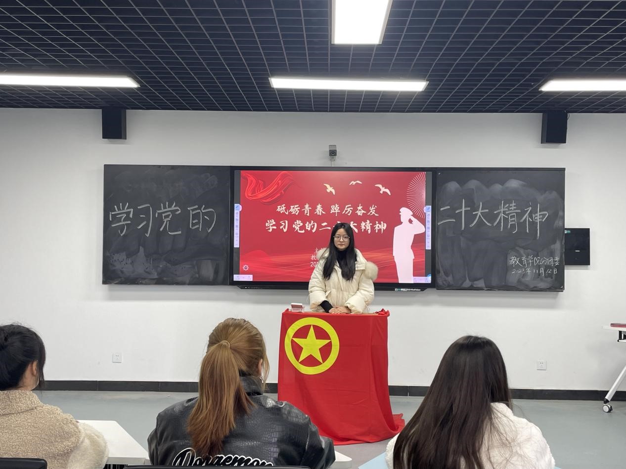 为学习贯彻党的二十大精神,引导当代大学生树立正确的价值观,我院分团委于11月12日上午在三里桥校区Z楼308教室组织开展“砥砺青春,踔厉奋发”党的二十大精神宣讲会。本次会议由我院分团委宣传委员薛芸担任主讲人,共50余名团员参会。