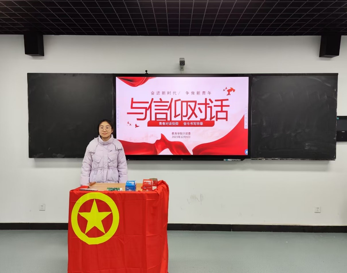 为坚定团员的理想信念,推动团员发展规范化,增强团队凝聚力,促进青年学生的思想交流。我院分团委于12月9日在教育学院z楼308教室开展“青春对话信仰,奋斗书写华章”主题团课,团委兼职副书记薛薇主讲,2022级入团积极分子40余人参会。