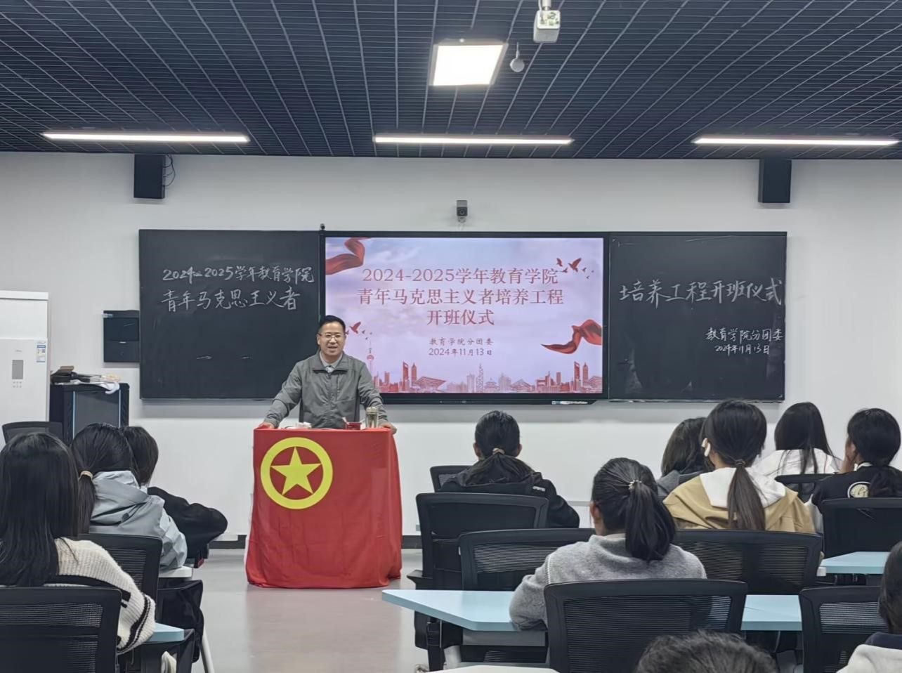 会议开始,葛西强为各位学员详细解答“什么是青马工程”、“什么是马克思主义者”、“什么是马克思主义”三个主要问题,他强调成为马克思主义者的宗旨为“信仰坚定、能力突出、素质优良、作风过硬”,要求同学们在处理问题时,要用辩证的眼光看待问题。随后,葛西强提出,要将理论框架和能力培养结合起来,把短期的培训和长期的自学结合起来,把树立远大志向与选择正确成长路径结合起来,这样才能成长为一名合格的青年马克思主义者。会议最后,葛西强鼓励各位青马工程学员将个人理想融入国家发展大局之中,努力学习进步,牢记初心使命,挥洒青春热血,争取成为推动社会进步的重要力量。