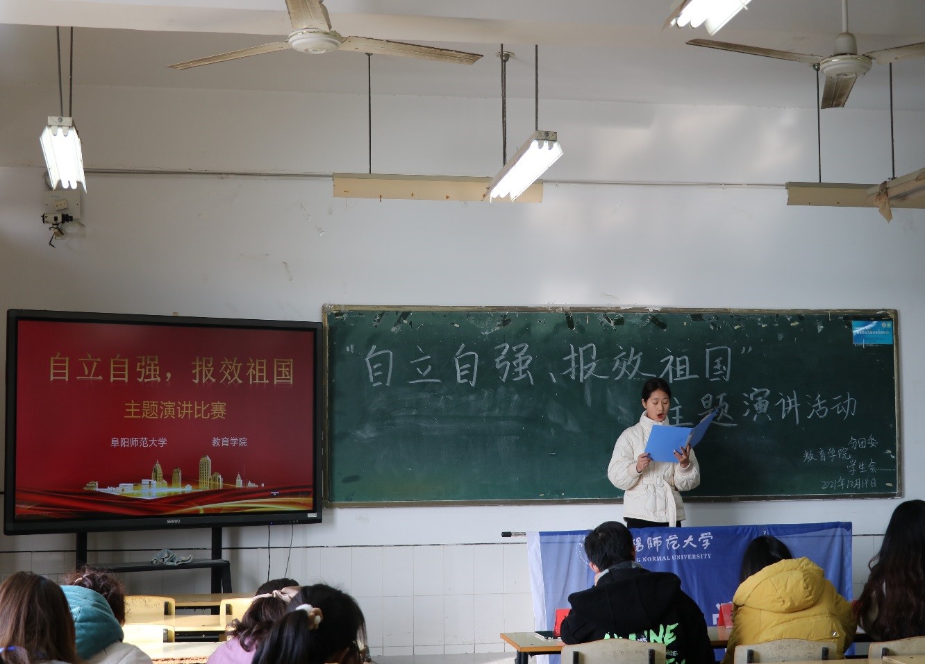 12月19日,学院在511教室举办以“自立自强,报效祖国”为主题的演讲活动。在讲台上,同学们把文字化为生动形象的话语,情真意切地抒发了自己对党和国家的感激之情。经过激烈的角逐,2020级小教专升本3班詹德纯同学以优异的成绩获得了本次比赛的一等奖。