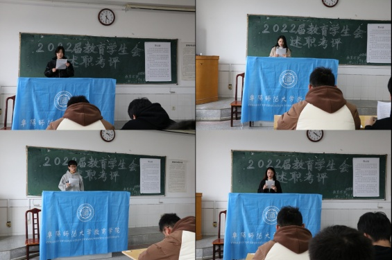 述职评议时,分团委负责人张思奇首先肯定过去的工作成就,并且向在座工作人员提出新学期的期望与要求后,学生会工作人员依次上台做述职汇报,从思想政治、工作成就、工作问题、以及未来工作中的改进措施几个方面进行,同时在述职中也表露出对新学期工作的展望。