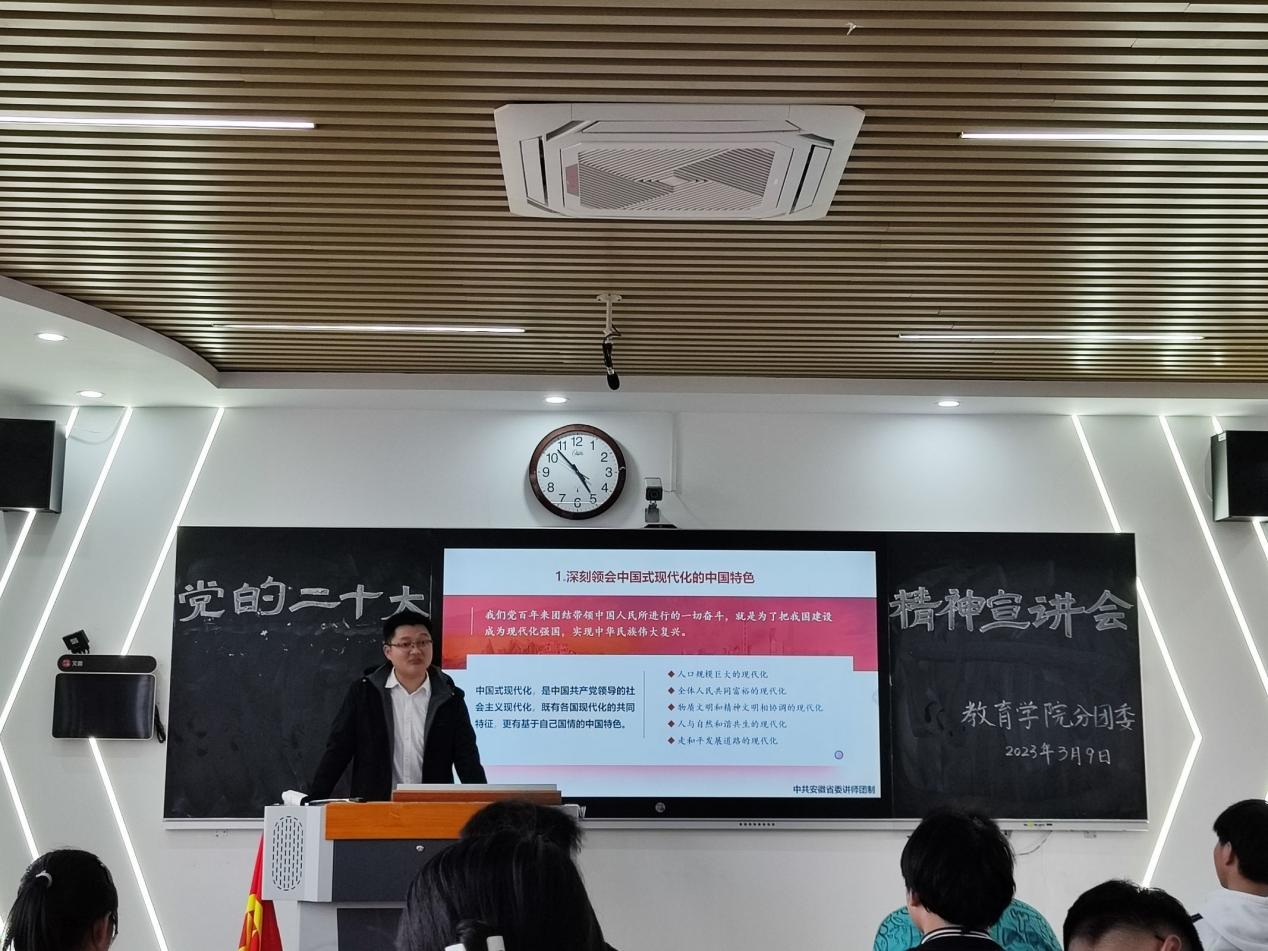 为全面做好党的二十大精神学习宣传贯彻工作,营造良好的学习宣传氛围,切实把思想和行动统一到党的二十大精神上来,我院分团委于3月9日组织党的二十大宣讲会,校青年讲师团成员李阿康主讲,我院50余名学生参会。