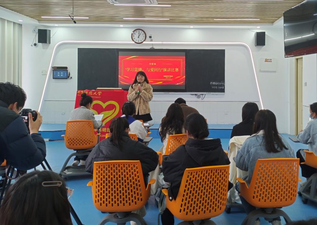 活动伊始,主持人简单介绍了雷锋事迹,引出了“学习雷锋,与爱同行”这一比赛主题。各位参赛选手按照签到顺序依次上台演讲,在演讲过程中,选手从容自如,自信大方地展现了各自的风采。一些选手伴着缓缓的音乐追忆了雷锋的感人事迹,阐述了雷锋精神的深刻内涵;另一些选手从身边出发,讲述了发生在身边的雷锋故事,分享了对雷锋精神的感悟,表达了将雷锋精神践行到底的决心;还有一些选手立足当下,从疫情出发,从时代的病痛中发掘雷锋精神的时代特征。激情的语言、感人的故事、崇高的精神,感染着在场的每一位观众。演讲结束后,评委老师们进行了集中点评,既肯定了每位参赛选手的自信状态与精彩表现,也指出了一些不足与缺陷,从专业角度提出了一些建设性意见,鼓励了参赛选手持续学习、不断进步。评委老师讨论评分之后,活动负责人在活动群聊中公布了获奖名单。最后,全体活动人员合影留念,此次比赛圆满结束。