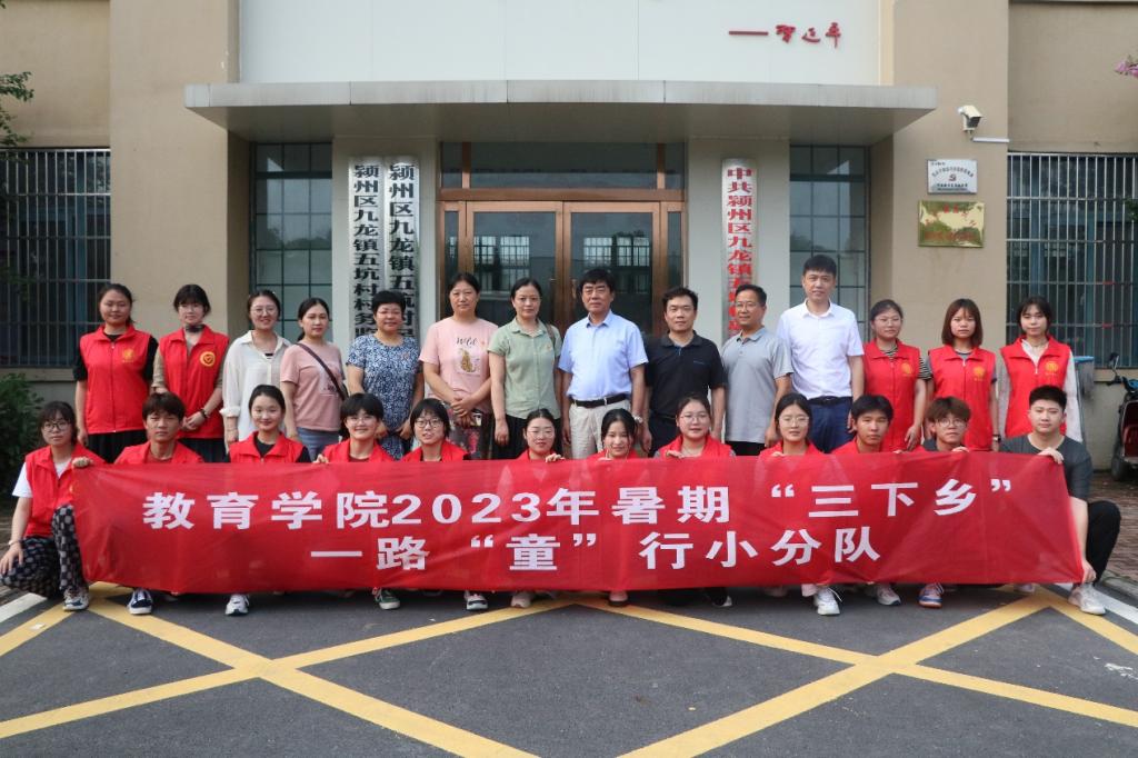 总结会上,九龙镇五坑村村支部书记闫永志对阜阳师范大学教育学院暑期三下乡活动表示大力支持,就志愿者一周的教学给予充分肯定。校工会主席魏文霞表示,阜阳师范大学与五坑村的结对帮扶,不只体现在经济振兴,还要注重乡村教育振兴,此次暑期“三下乡”活动是服务乡村基础教育振兴的有力抓手。教育学院院长李欢也表示此次三下乡活动具有核验师范生自身核心素养的重要参考价值,对于探索高等学校师范人才培养模式创新和实践教学改革具有实践意义。