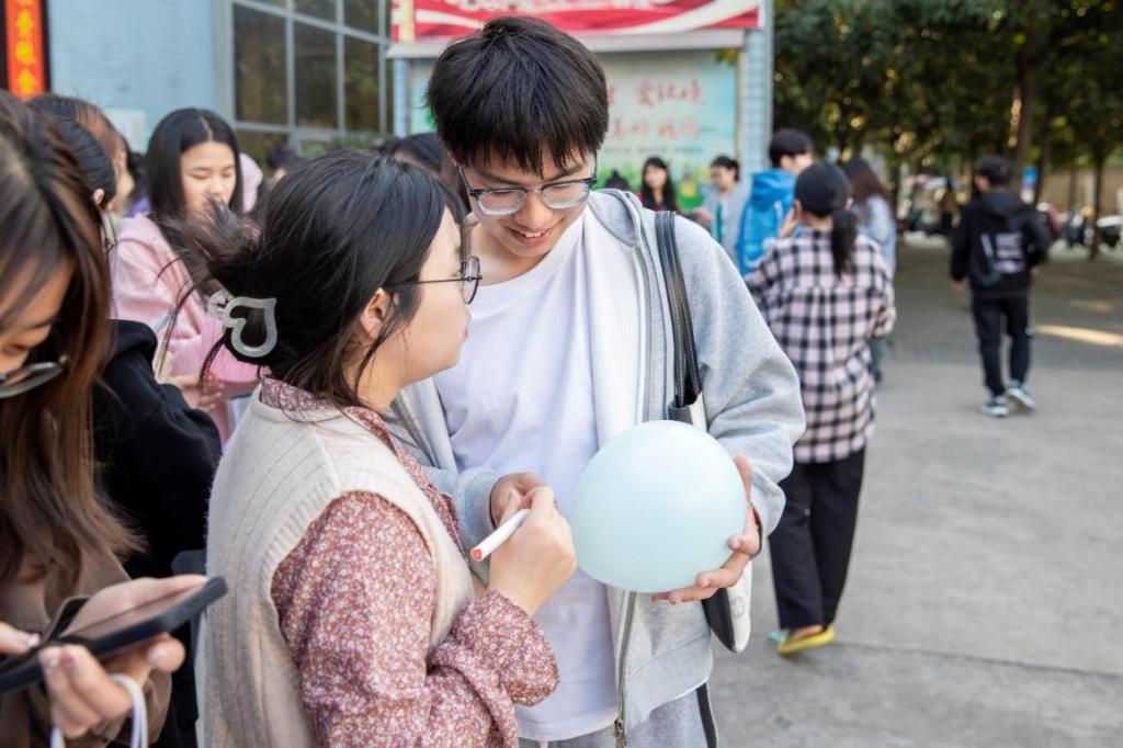 在活动中,参与者围绕活动主题用马克笔在气球上以绘画的形式表达自己的心情。有的同学在气球上写下心愿,绘制自己的梦想蓝图;有的同学在气球上用美丽的图案来描绘情绪;有同学在气球上写下心灵寄语。同学们积极参与并拍照打卡,整个活动现场充满着轻松自在的氛围。