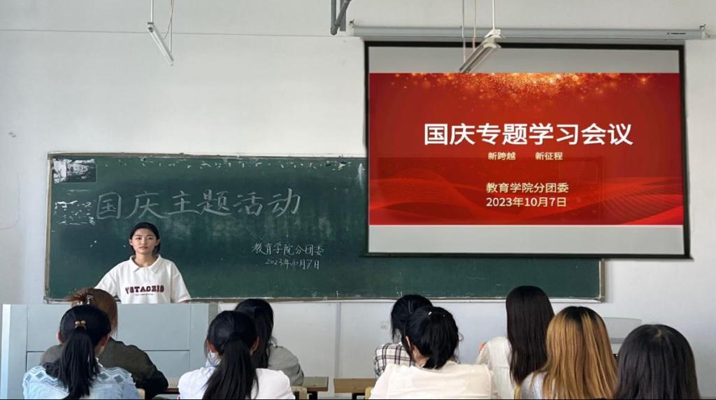 伴着金秋明媚的阳光,迎来了中华人民共和国七十四岁华诞。为弘扬爱国主义精神,提高学生的民族自豪感和文化自信心,我院分团委于10月7日下午在三里桥校区z楼401开展国庆专题学习会议,我院分团委委员孙瑜为主讲人。