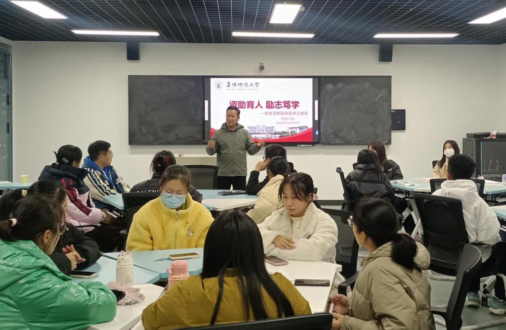 11月29日,我院于西湖三区Z楼310教室举办了“资助育人,励志笃学—新生资助政策宣讲沙龙会”。此次沙龙活动由学院资助老师彭小玉主持,学院党委副书记葛西强出席,邀请了教育学院资助助理万敏、获得国家奖学金学生尹一冰、国家励志奖学金学生柏瑞雪和鲁心雨,分别围绕资助政策解读、大学生成长发展和学业规划等方面做分享。学院党委副书记葛西强指出“资助政策点亮希望,资助宣传助力成长。新时代大学生们乘资助之风,更应当脚踏实地努力学习,学有所成以回馈国家,服务社会!”。
