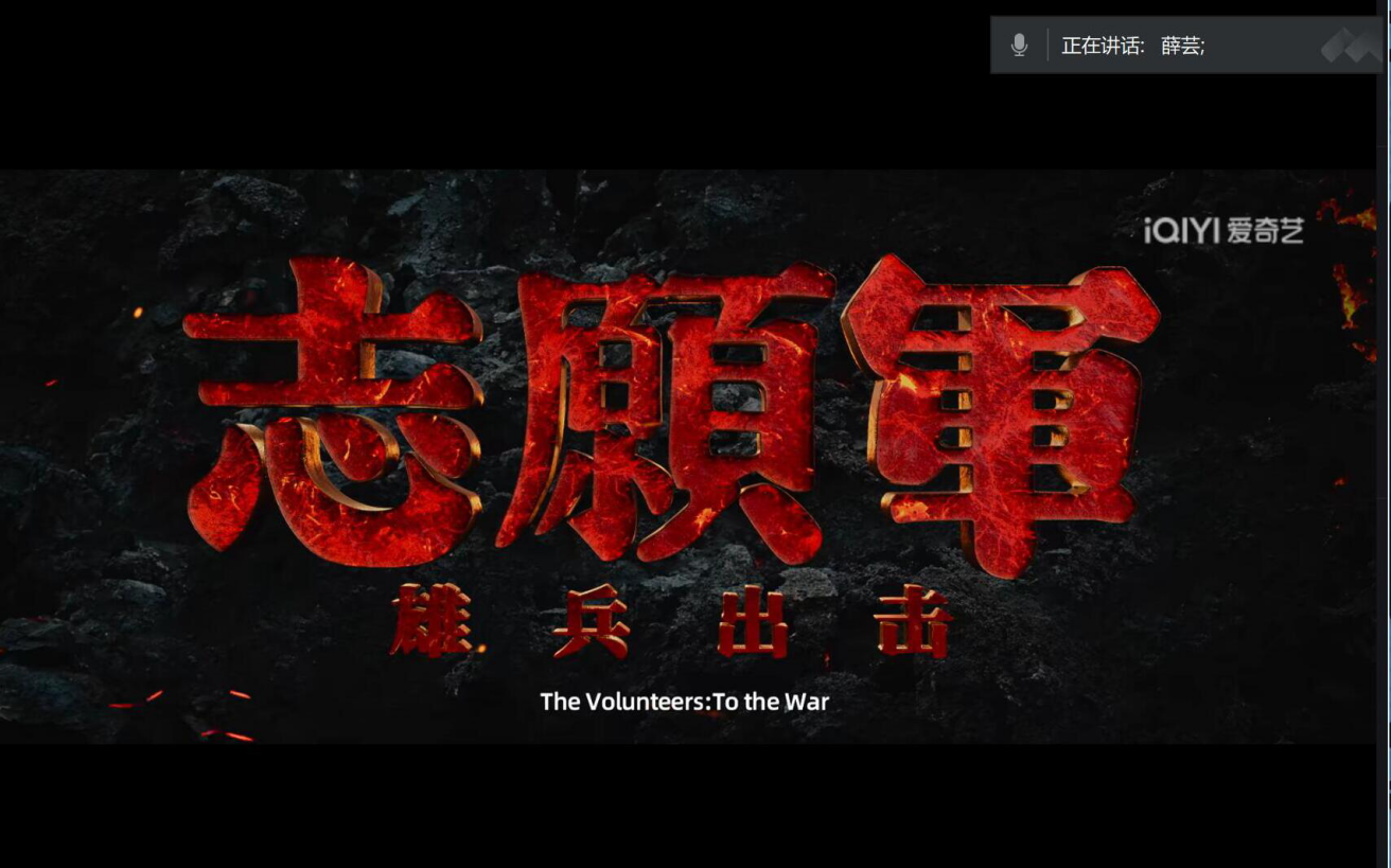 活动开始,薛芸首先带领同学们回顾中华人民共和国成立74周年以来的峥嵘历程和新时代取得的伟大成就。接着,薛芸播放电影《志愿军:雄兵出击》,该电影以史诗般的叙述方式,详细描述抗美援朝战争缘起,再现革命先辈以非凡气魄和胆略作出抗美援朝、保家卫国历史性决策的雄伟画面,展现新中国在立国之战中的坚定立场与不屈精神的同时,也彰显了中国人民志愿军英勇无畏、保家卫国的决心和信念。影片结束后,与会同学发表观影感受,表示更加深刻地认识到抗美援朝战争的历史意义,以及当今幸福生活的来之不易,进一步领会志愿军将士们为了祖国人民的幸福生活勇于牺牲奉献的伟大精神。