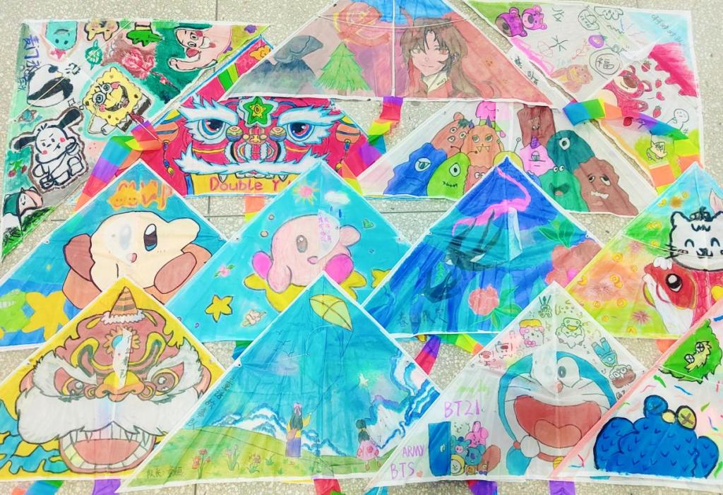 活动初始,每位同学精心挑选心仪的风筝样式,大家以风筝为载体,完成风筝的简易制作,依据个人的喜好在风筝上进行创作图案和填色,并写上自己的心愿。同学们在绘画涂色中交流分享大学生活的乐趣,心灵深处的感悟。