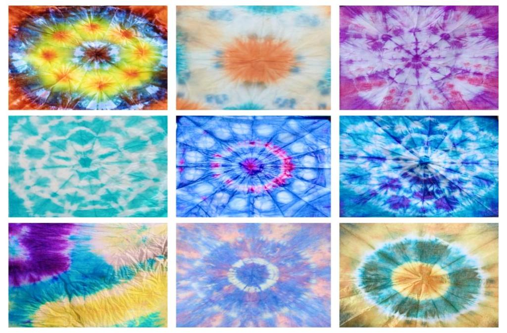 简短的开幕式后,现场工作人员先为大家介绍了扎染的历史渊源,让大家领略了这项非物质文化遗产的神奇与魅力。同时为大家讲解了活动现场所用到的工具、扎染的制作流程以及注意事项,鼓励大家发挥想象,创造独属于自己的扎染作品。随后大家用玻璃弹珠、树叶、夹子捆扎成自己喜欢的形状,经过冲泡、反复上色、固色,完成了独一无二的方巾、白色T恤、头绳扎染作品。最后大家互相展示自己的精美作品,与其他同学交流创造灵感和制作技巧。
